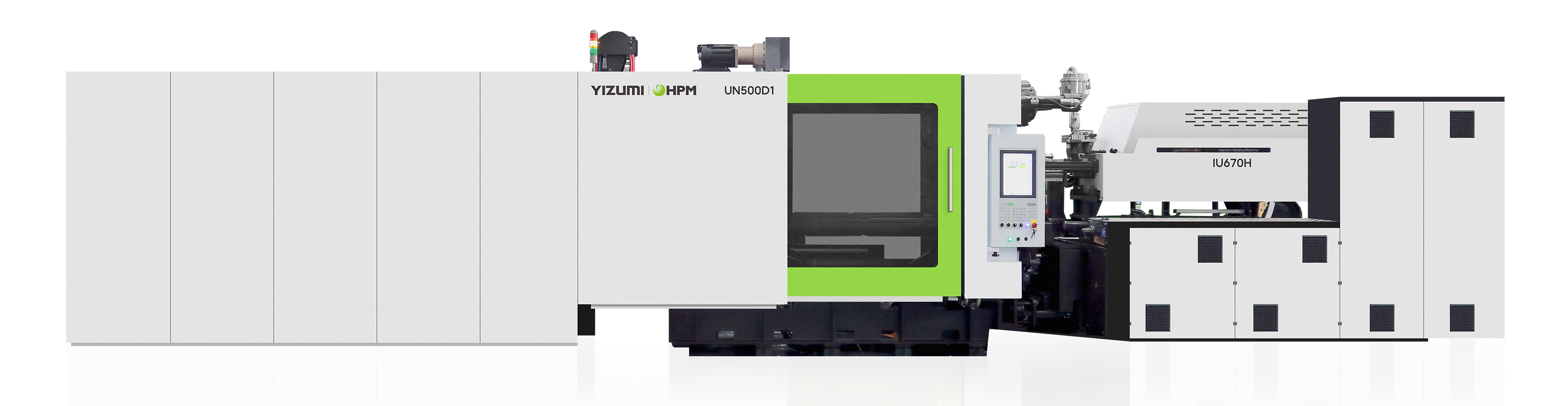 UN500D1-E hybrid injection molding machine adopts a two-platen clamping unit and an electric-driven injection unit, combined with the special mold for IMC panel and robots to embed inserts (circuit boards) and extract products, to provide integrated solutions for customers in the development of new products for auto parts, home appliances, and 3C electronics.