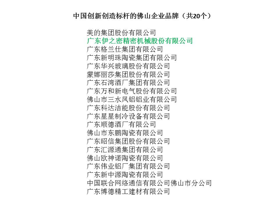 9月9日,伊之密在第七屆“品牌佛山”活動(dòng)中,榮獲“中國(guó)創(chuàng)新創(chuàng)造標(biāo)桿的佛山企業(yè)品牌”稱號(hào),一同獲得該稱號(hào)的還有美的、萬(wàn)和電氣、蒙娜麗莎、格蘭仕等企業(yè)。