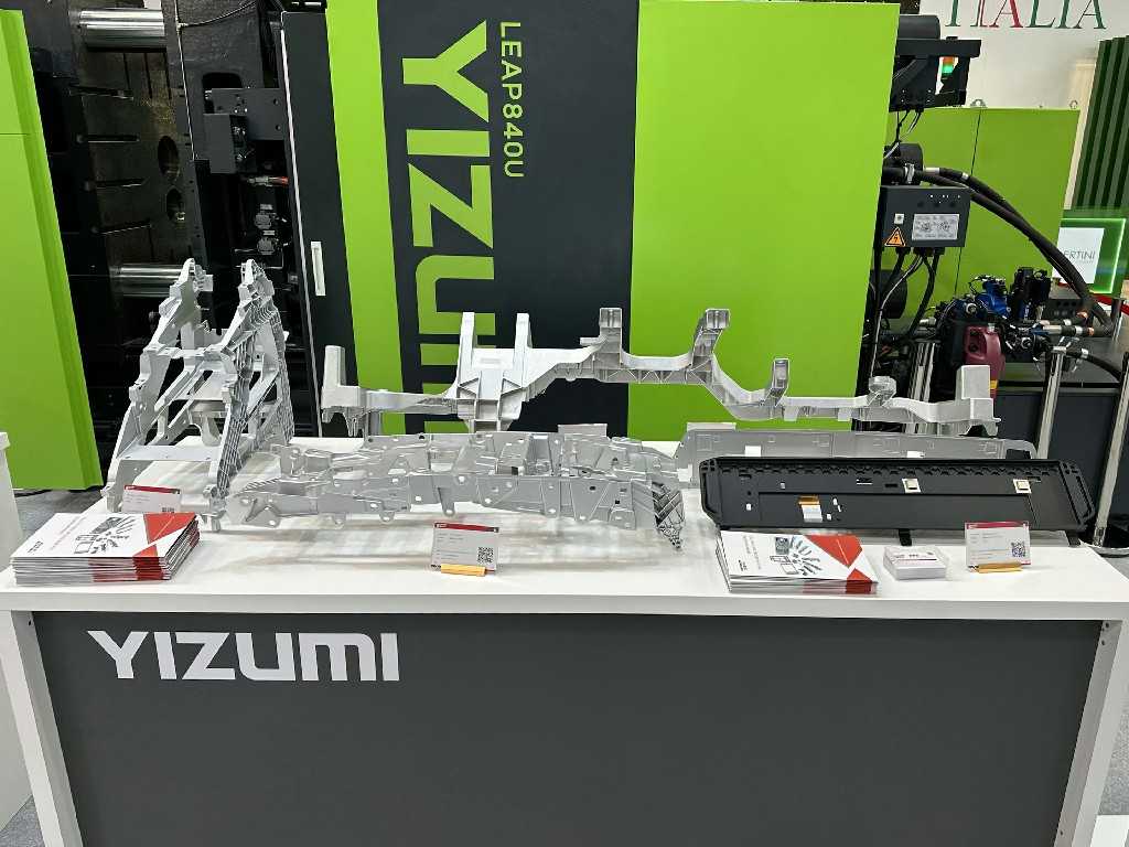 在伊之密展會上,擺放了款式多樣的金屬制品。其中,伊之密與國內(nèi)整車制造企業(yè)共同完成的“超大型一體化壓鑄件”一經(jīng)亮相就受到廣泛關注。該產(chǎn)品的外形尺寸為1875x1617x736mm,是當前已知最大的大型一體化壓鑄結構件。它是由最大鎖模力可達100000kN的LEAP9000T超大型壓鑄機壓鑄而成,充分展示了中國制造的實力,也驗證了LEAP系列壓鑄機完全可以滿足全球新能源汽車大型一體化壓鑄結構件最苛刻的需求。